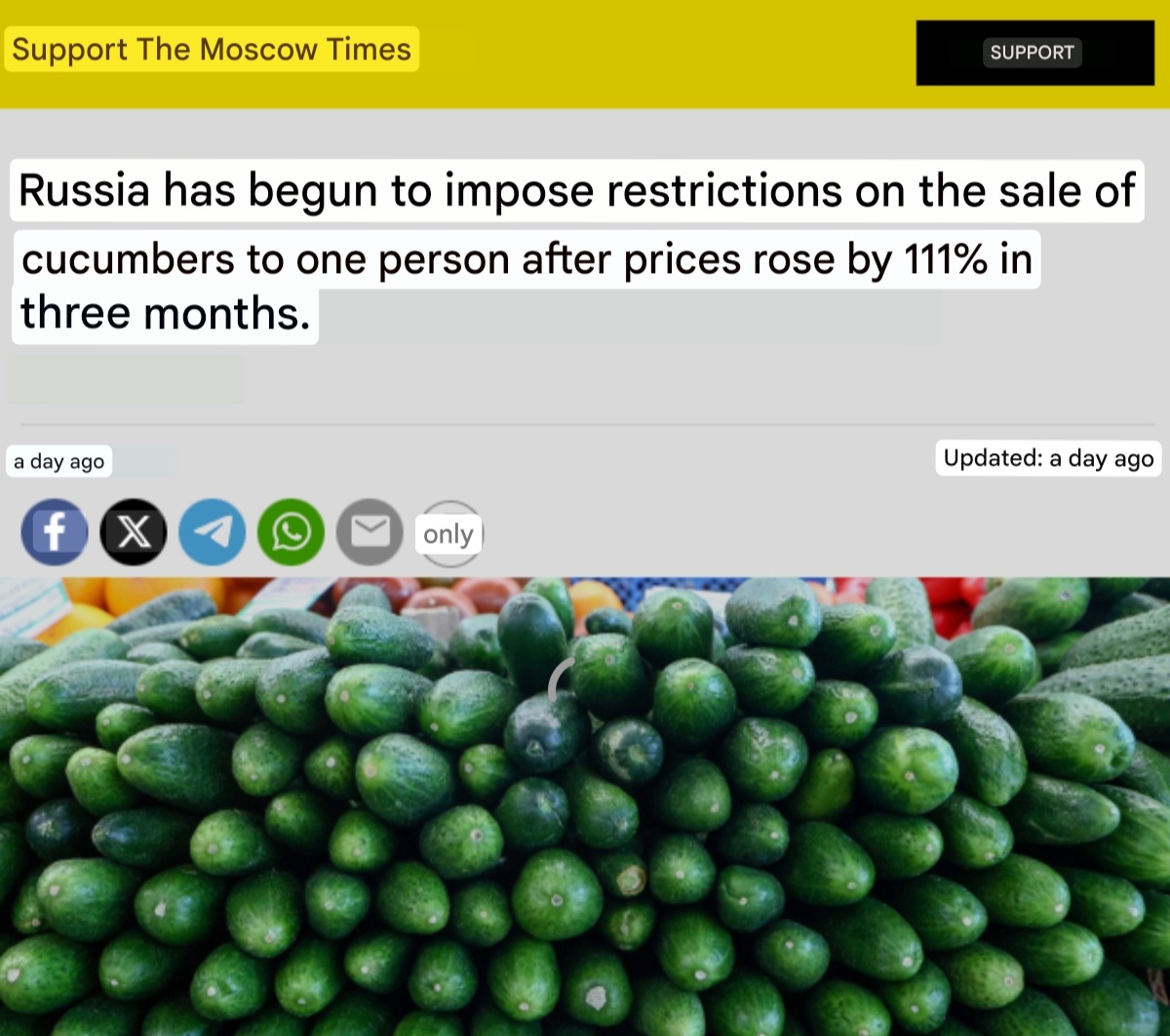 >>529761118how does this even happen. if i plant two cucumbers i have unlimited cucumbers for all of summer.surely the russians can grow a plant that literally grows like a weed and just bottles water into cucumbers all day, right?!