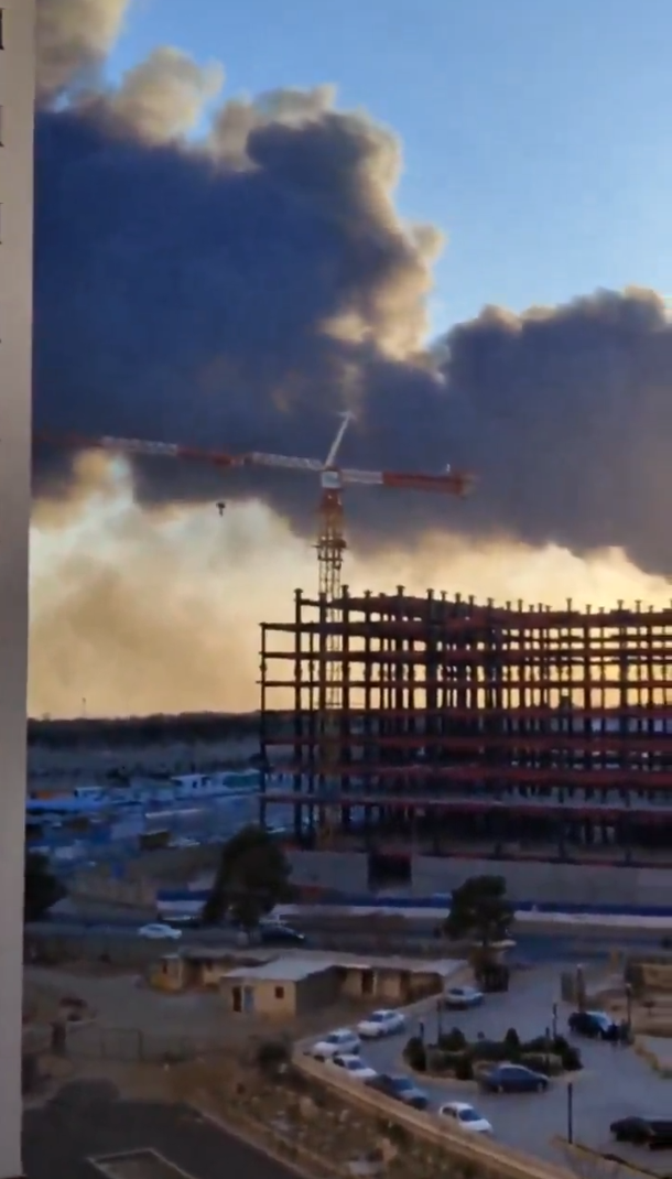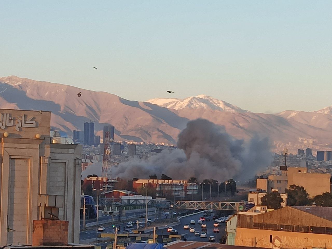 Something big is burning in Tehran as sun sets, might be the airport