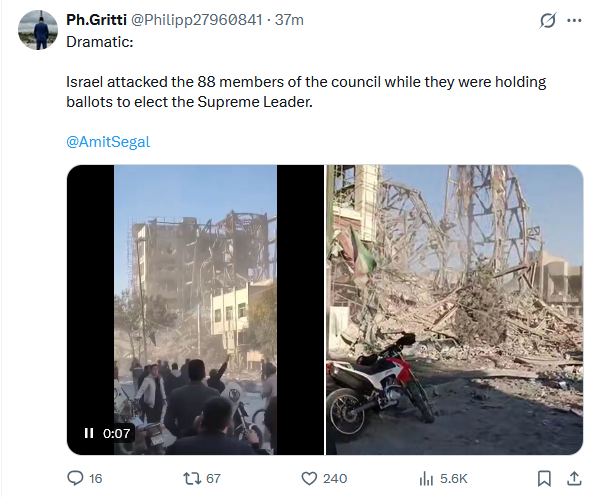 >>529743899>Israel attacked the "Assembly of Experts" building in Qom while they were voting to choose the next supreme leaderSo they all died?