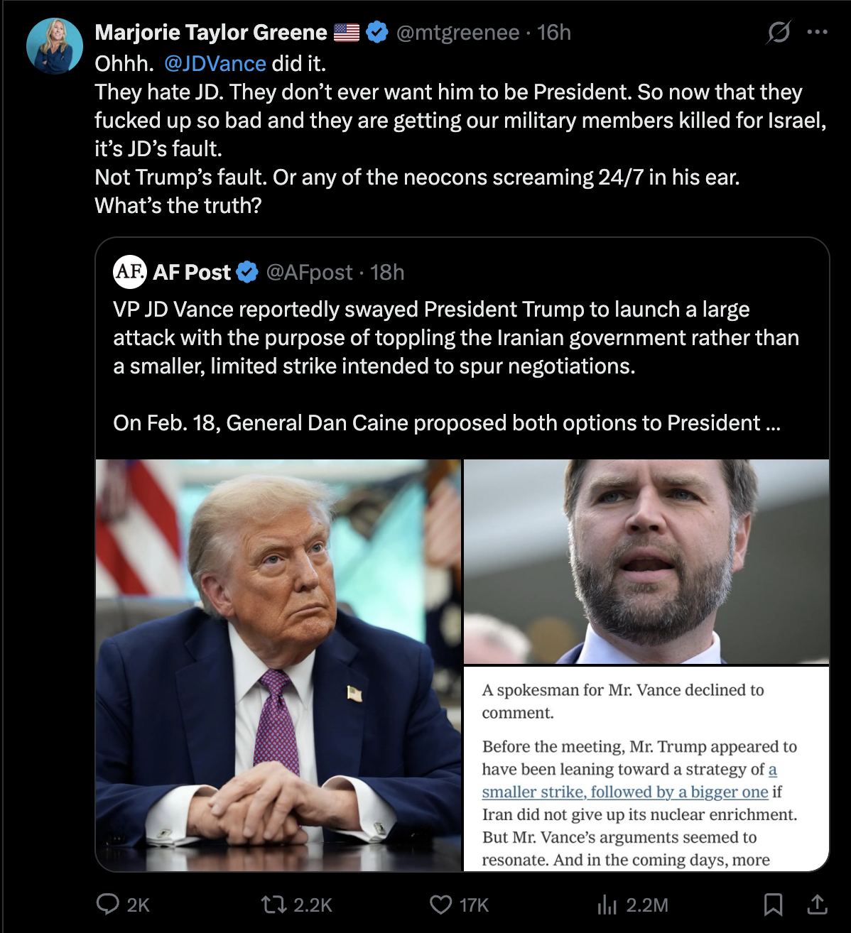 It was obvious around the Republican convention that Vance would start war with Iran. You have to be dead dumb and blind not to know that.