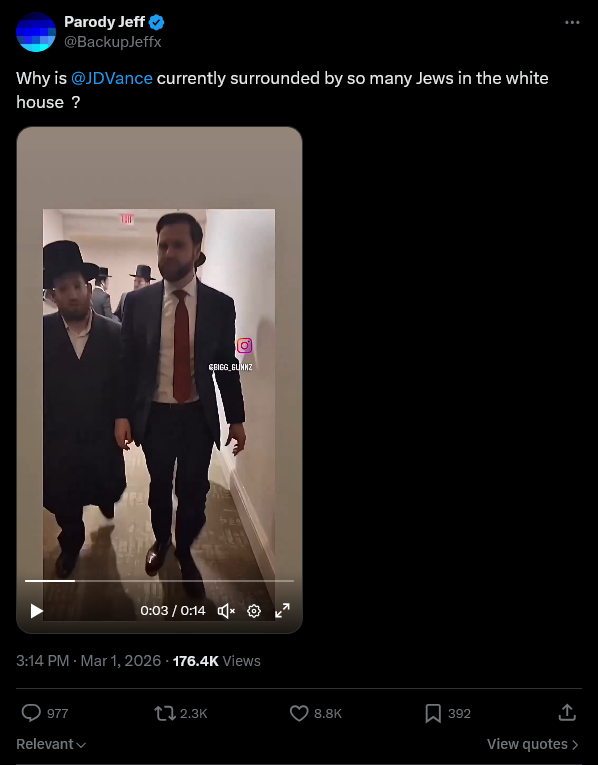 Vance is surrounded by jews in the White House because the WH is always full of them.