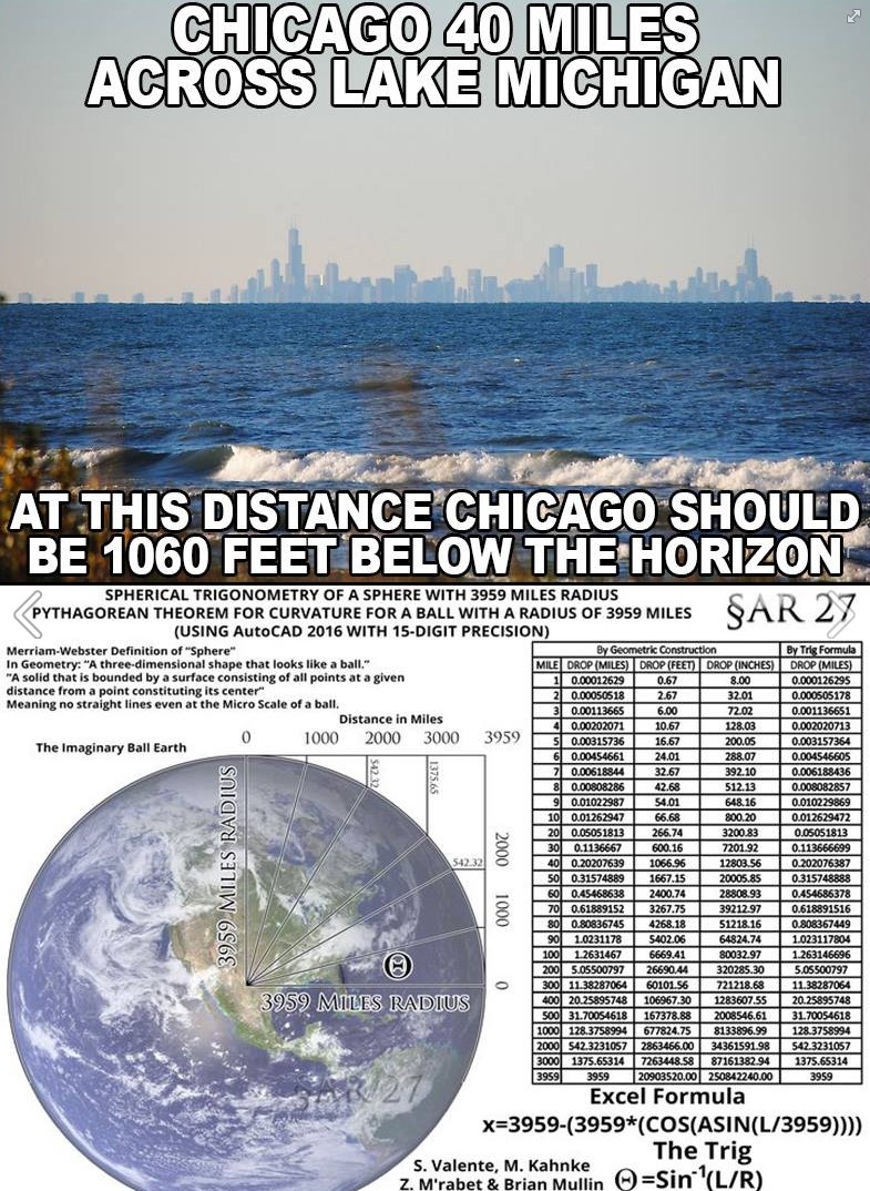 >>529757172LOL you need to call bullshit because otherwise you would admit that if it were possible to see 28 miles from a 6 inch elevation it would be LITERALLY impossible on a globe? i agree with you, but here's the experiment fully laid out and hundreds more just like it: https://www.youtube.com/watch?v=BsMyyG0XMgEwe literally see like 30x farther than should be possible>>529756703yeah whatever you say buddy, in reality the rate at which earth needs to be curving to be a 3959 mile radius sphere is falsified entirely, its a fanfiction that never existed. you've never seen earth curving for yourself, you've never felt earth spinning for yourself, our stars dont change over time, we have a star that hasnt moved for all of history, everything you think you know about where you live has been given to you by bill nye and neil degrasse tyson and the freemasons who invented the model 400 years ago