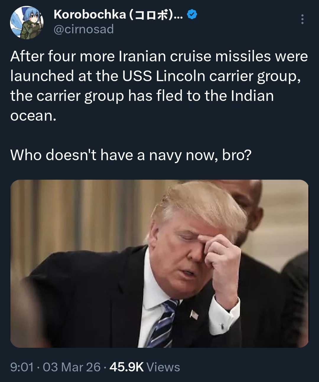 >>529757617>who doesn't have a navy now?!Still Iran