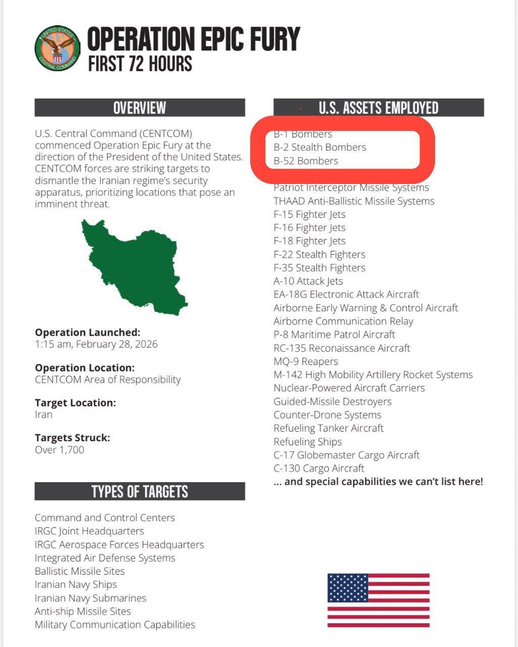>The Pentagon confirms that in the last 24 hours, strategic B-52 bombers also participated in strikes in the "Epic Fury" operation against Iran