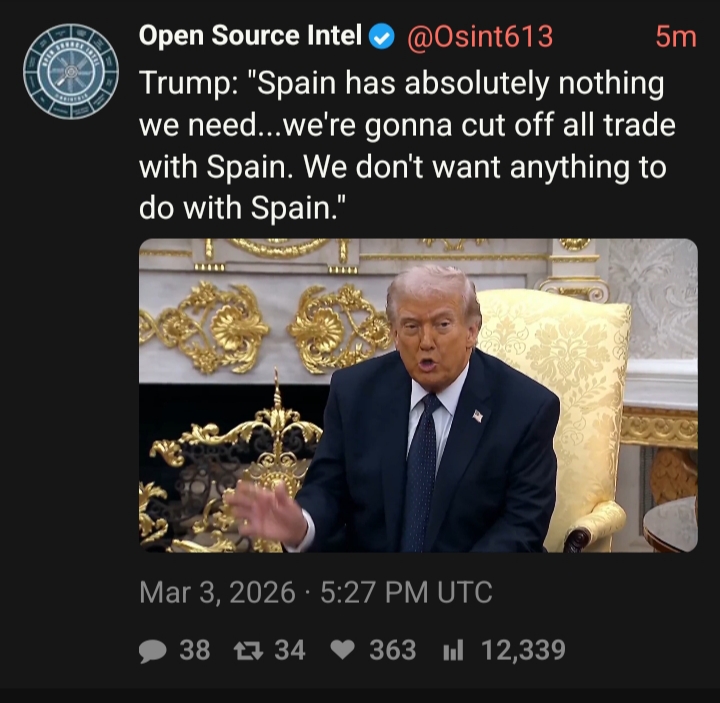 >>529762024Honestly it's the first time in 200 years that Spain acts based. Other EU countries will follow suit now. With enough pressure Trump might either stop his retarded shitwar, or suffer an embargo from Europe himself that would send this economy down the drain even quicker. He really overplayed his hand this time.