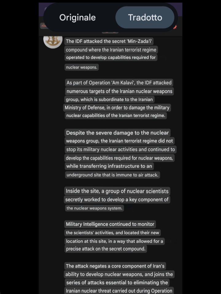 Interesting IDF statement>TL;DR after the June 2025 strikes, Iranian nuclear scientist reorganized at a secret nuclear facility known as "Min Zadai" which the IDF struck today