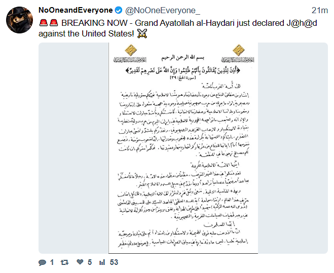 >>529768592Oh shit this is from the Grand Ayatollah. Did we only get the UnderAyatollah? The Deputy Ayatollah?