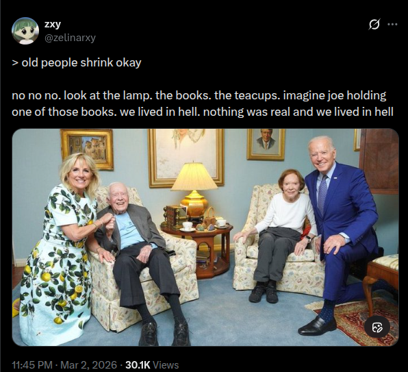 >>529772143You don't remember the b*den visit to Jimmy Carter episode? Still baking.