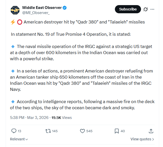 if its true, the burgers are utterly retarded. Why park 600km away from the coats, when iranians have ASBM with 1000km range.