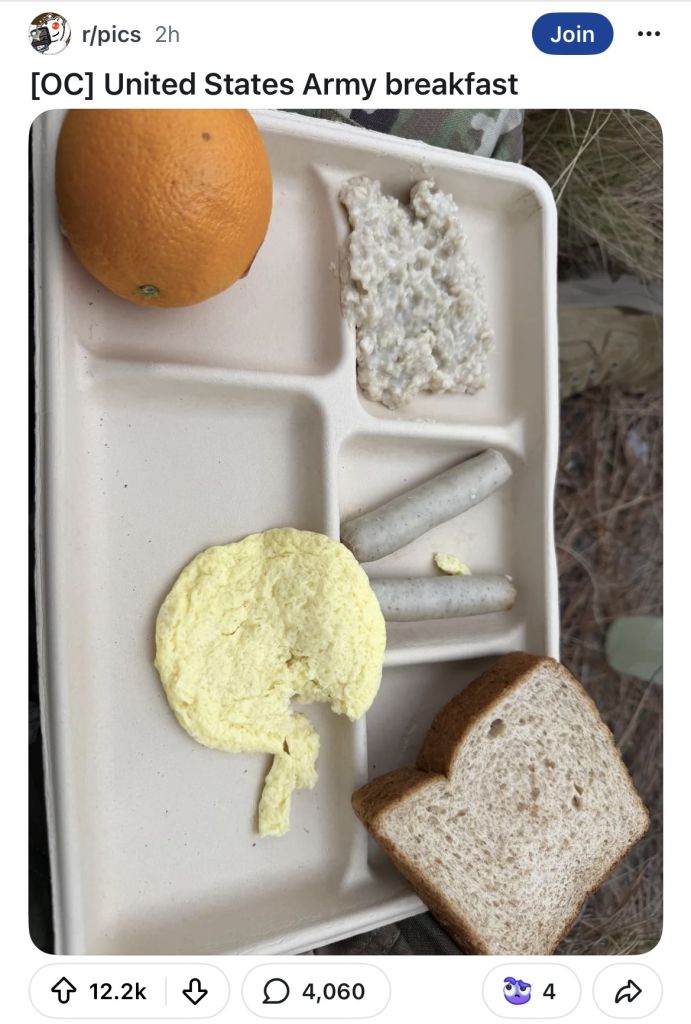 >Last meal Zoomers eat before flying to the mountains of Iran