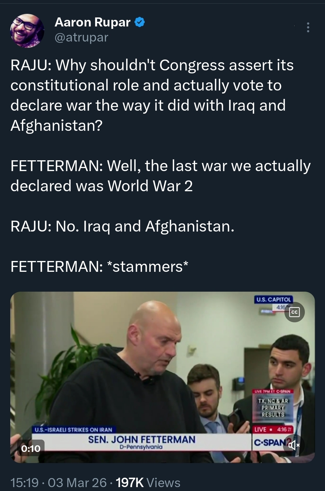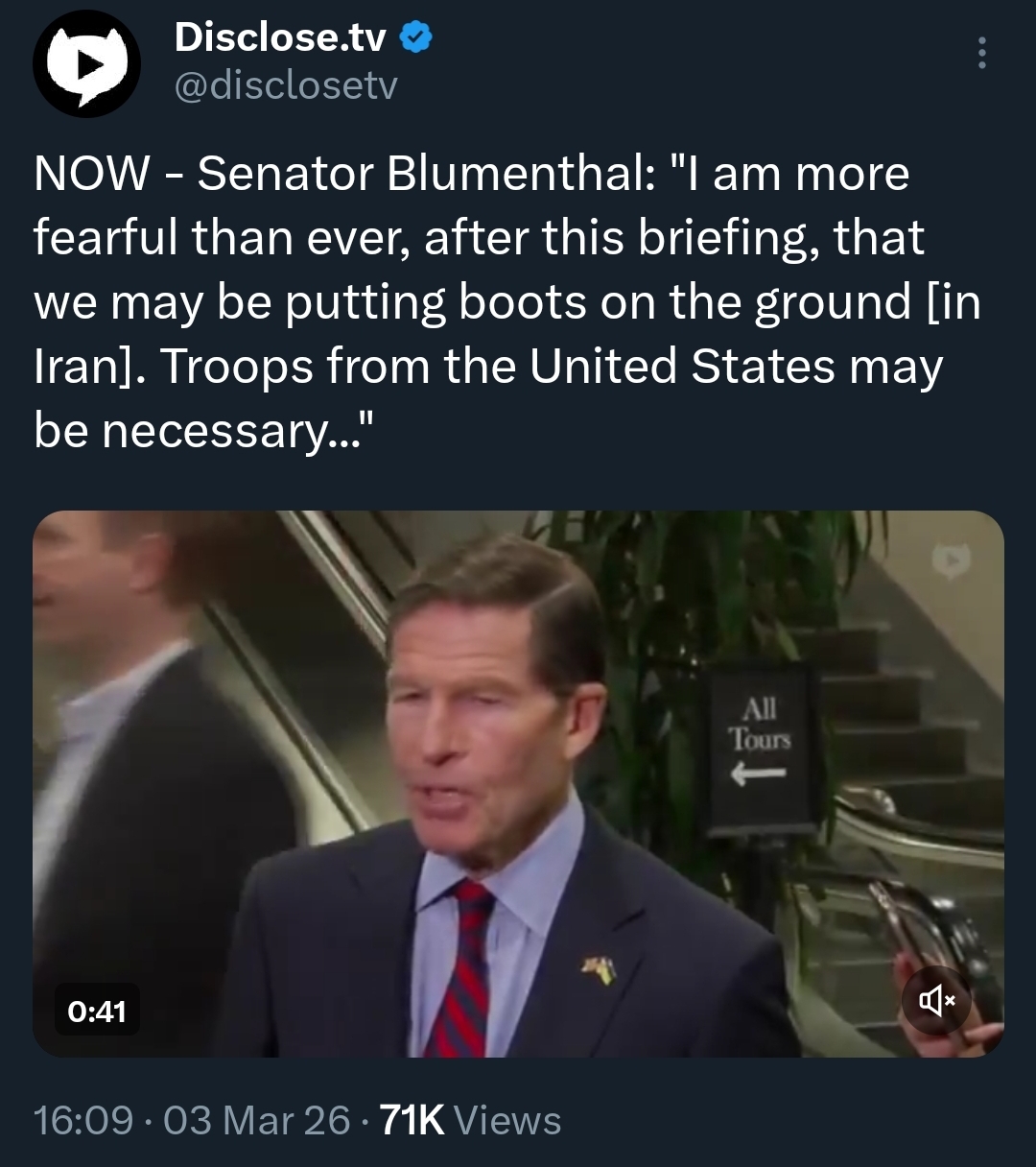 >>529788105doesn't support the war because he views it as handing the middle east over to Israel and making them a future rival superpower but he also understands and accepts that Iran can't possibly win the war and will be regime changed he's so mad about it that he finally told his followers last night that he's become a free agent and might/probably will vote for democrats instead, encouraging them to do the sameeven when he was sitting out 2024 and not voting for Trump, he still maintained that people shouldn't vote for Kamala either and that he would "NEVER vote for a democrat"so trump bombing iran made him come out as open to voting for democrats