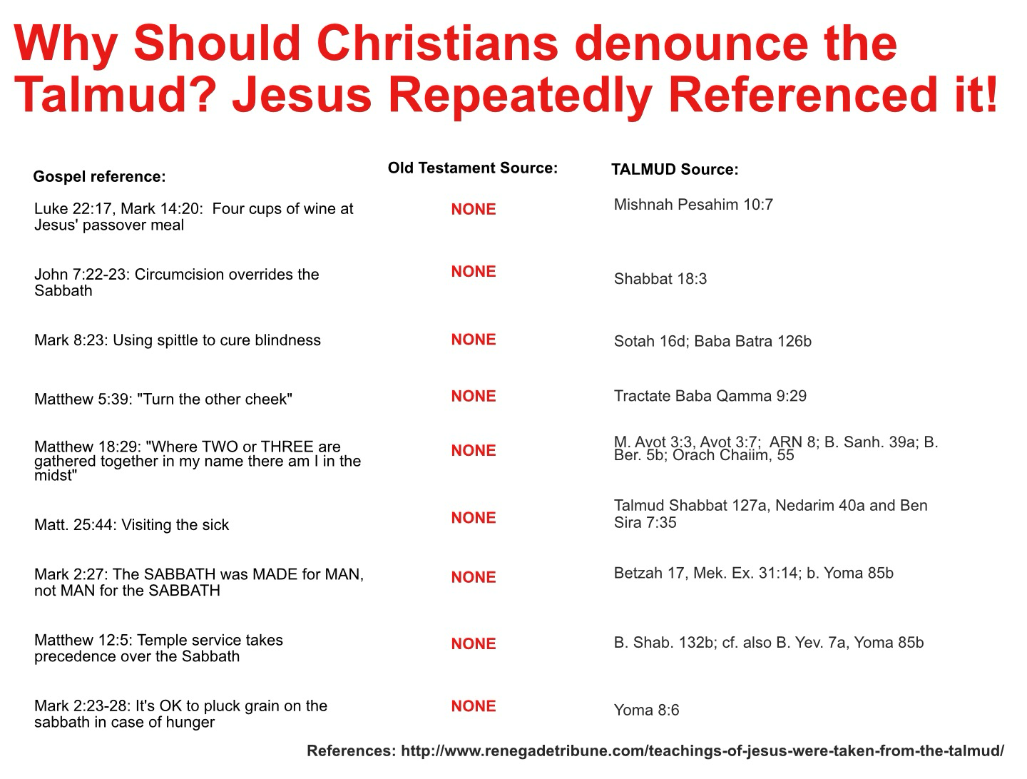>>529791974Almost all of these have references in the Old Testament, not the Talmud. The Talmud also was written hundreds of years after the New Testament so if anything the accusations of borrowing are reversed.