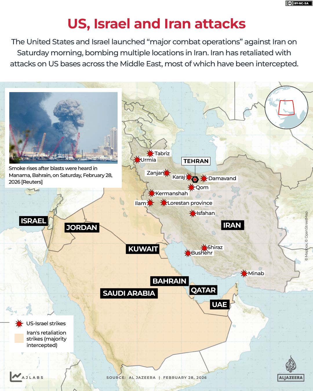 Large explosions heard at a US base in Saudi Arabia.