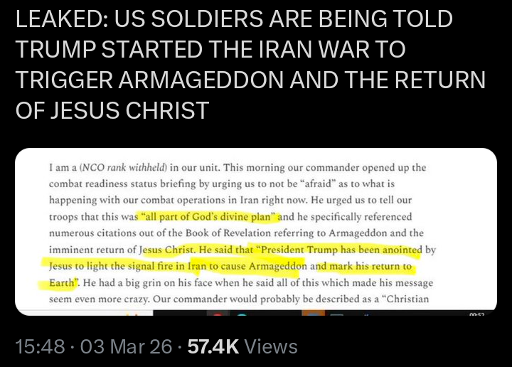 Wow.This is the right-wing, pro-war Daily Telegraph.The opening paragraph?:"American and Israeli aircraft bombed hospitals, residential buildings and schools across Tehran on Tuesday in what residents described as “an apocalypse”."