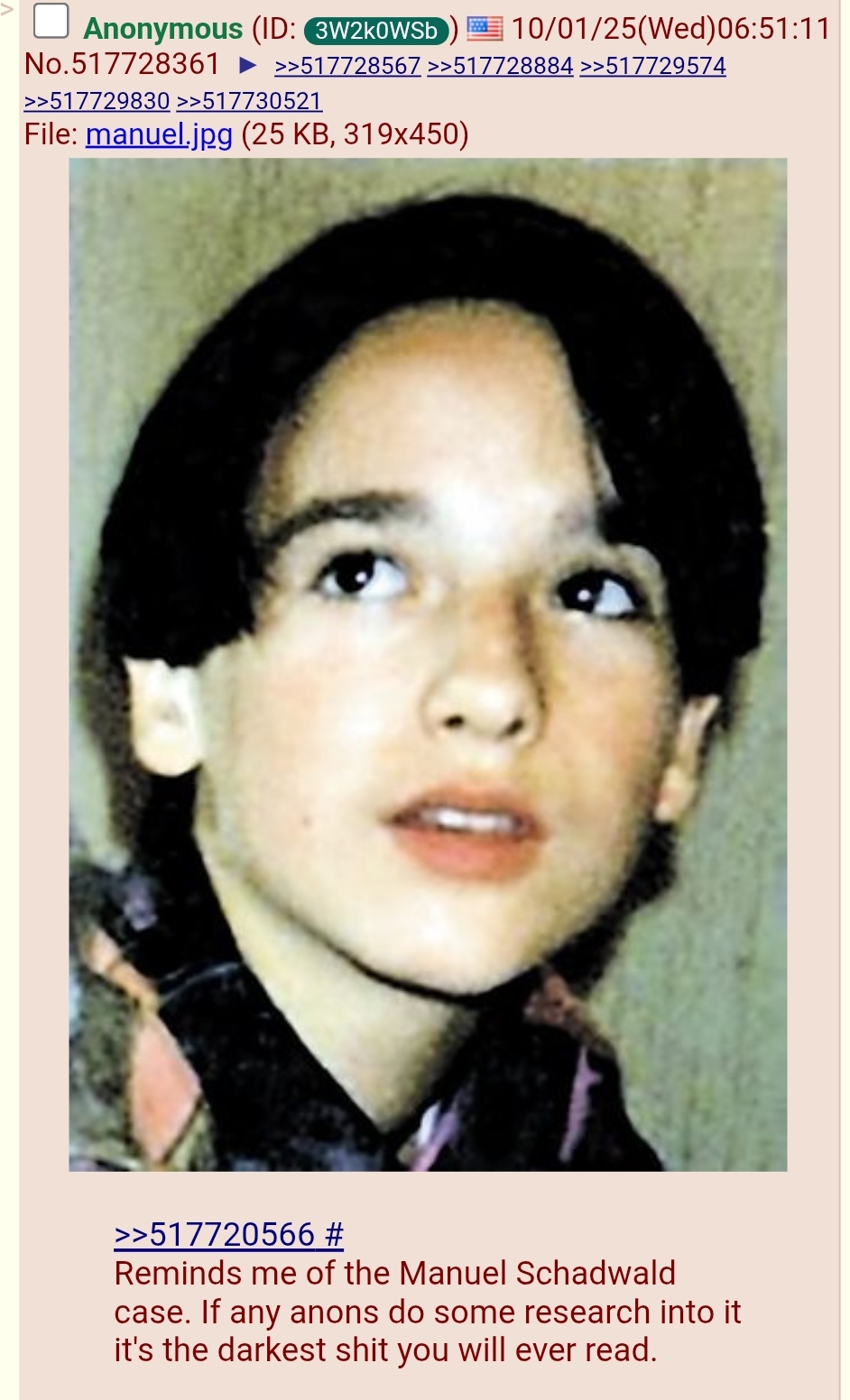 >>529811194Wild. Even the Wikipedia article is wild and that is only the surface.https://en.wikipedia.org/wiki/Disappearance_of_Manuel_Schadwald