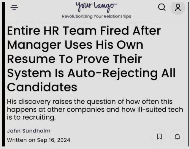 >>529830802shit like sending in fake applications to check if the system is working should be done by default.every time I update the systems, I have to run my unit tests to see if stuff is still working the way it should. if I didn't do that and would push faulty shit to production, I'd quickly lose my job over it.HR should be subjected to similar tests.