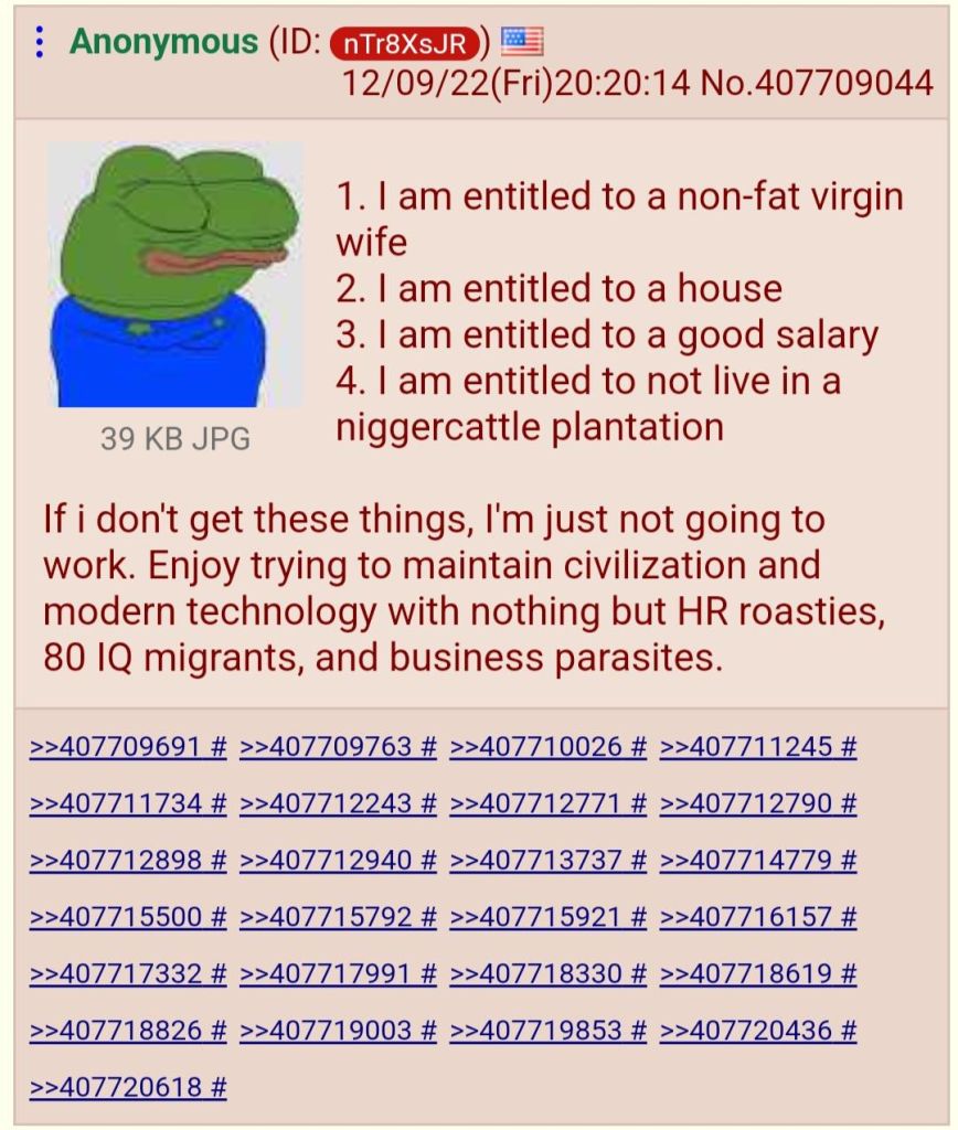 >Im working while white trash like you shits on 4chan all day.