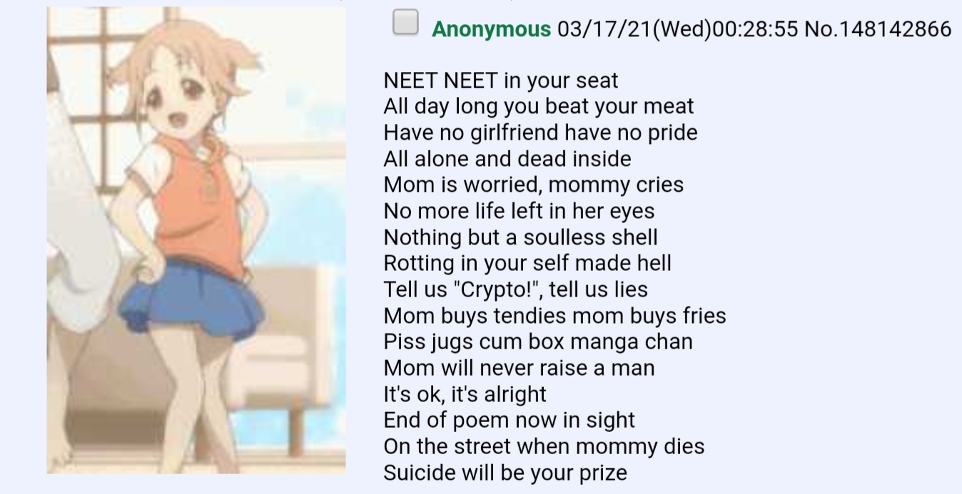 Absolutely based NEET Chad. Some people just get it. Stay gold, ponyboy