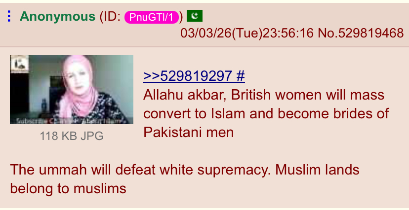 >>529819297Allahu akbar, British women will mass convert to Islam and become brides of Pakistani menThe ummah will defeat white supremacy. Muslim lands belong to muslims