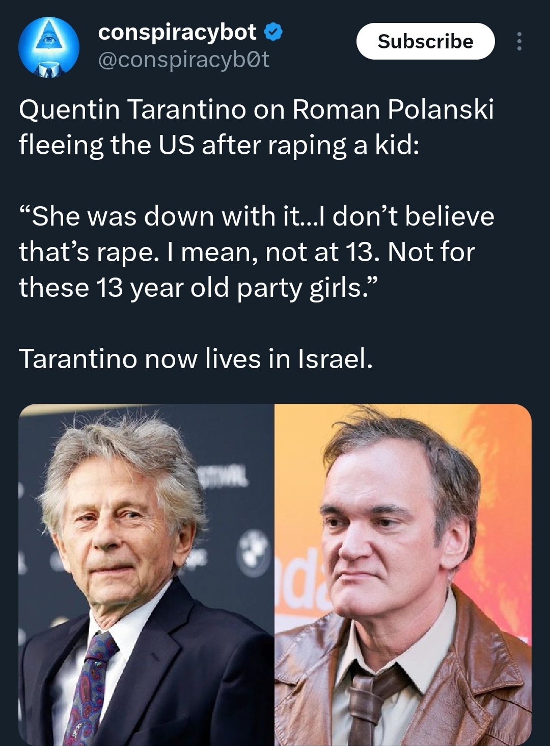 Israel also has wierd views on rape. They had massive protest when soldiers where trialed for raping prisoners. Over 50% of israelis say its impossible to rape a friend