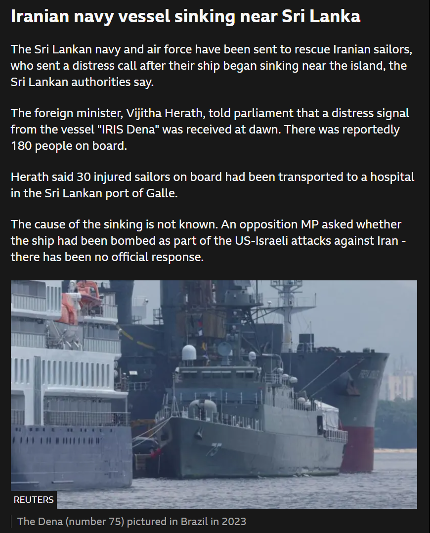 >Trump says U.S. has "destroyed and sunk 9 Iranian Naval Ships" and "largely destroyed" Iran's Naval Headquarters