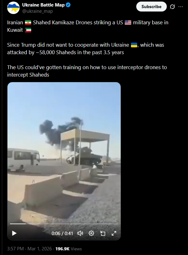 >>529836794Lol. Even a tiny amount of American financing could have turbocharged Ukrainian drone production so much so that there's a surplus to be used to defend American bases in the Gulf.