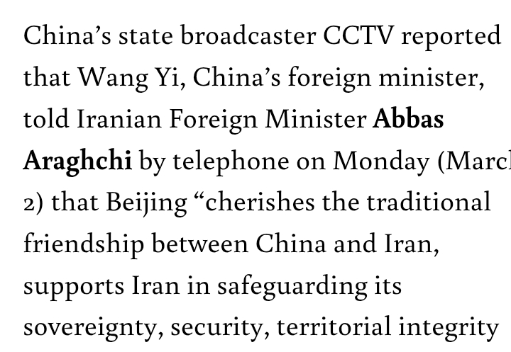 >Leadership of Iran all dead or missing>China urges IranTHEN WHO WAS PHONE