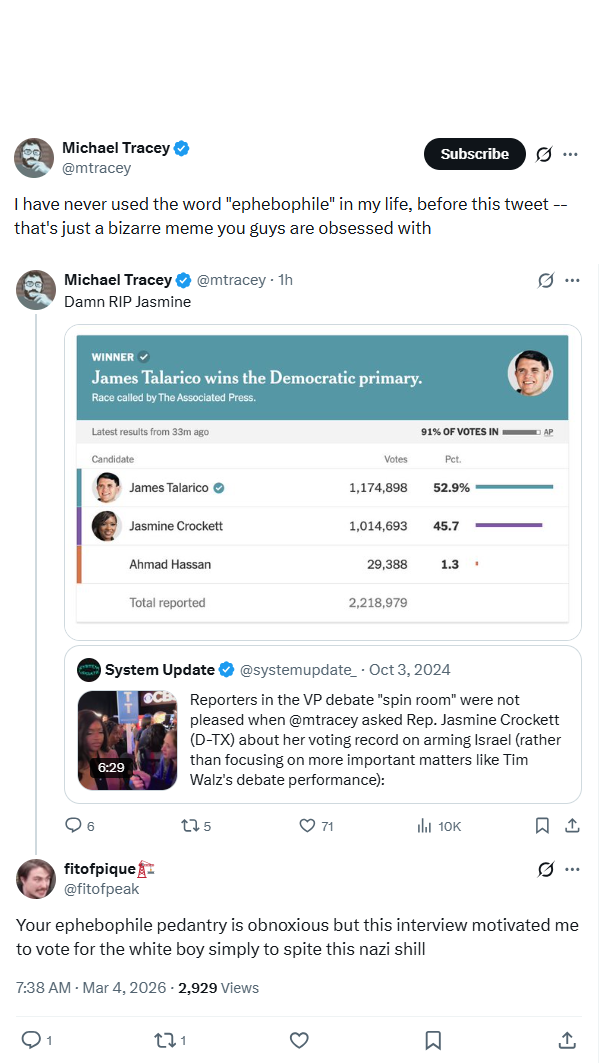 It sucks that Crockett lost. Talarico voters are trash.