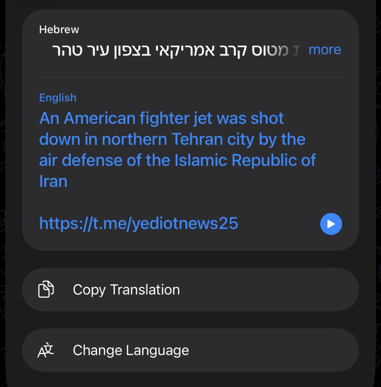 >>529836277Yedioth Ahronoth claims it was an American jet that was downed, not Israeli