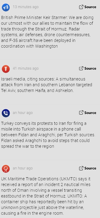 By posting in these threads, you recognize Israel controls the US Military, America is the global vector for degeneracy, and you denounce the Talmud.Previous:>>529828050▶Day 4:>US embassy in Dubai hit, rockets in Tel Aviv>US offers insurance on ships in Hormuz>IDF tanks damaged in south Lebanon>possible Syrian buildup on Lebanese border>Kurdish militias might enter the chat▶Day 3:>Hormuz straight still closed>Iranians A/D still active>Iranian drones and missiles still launching>Al-Manar goes dark>IOF war criminals bombs IRIB▶Day 2:>IDF issues evacuation orders to southern Lebanon, Al Manar in Beirut and IRIB in Teheran>IRGC says that the Strait of Hormuz has been closed and that Iran will set fire to any ship trying to pass>Qatar downed 2 Iranian Su-24 aircraft, the Qatari Defense Ministry says>QatarEnergy, accounting for 20% of global LNG trade, stops all production after attacks on its facilities>IDF says Iran is moving from isolated launches to larger missile barrages>Iran strikes Saudi oil infrastructure, including ARAMCO Ras Tanura facility>3 x U.S. F-15E fighter jets were shot down over Kuwait in a FF incident, all crew members ejected safely and are in stable condition - CENTCOM>Iranian drones strike U.K.'s airbase RAF Aktoriri in Cyprus>De-facto Iranian leader Ali Larijani says: "We will not negotiate with the United States">Hezbollah joins the war, Israel retaliates with airstrikes on Beirut; does not rule out invasion▶Livestreamshttps://www.youtube.com/watch?v=wWbHTA2dJY8 ▶Iran state media (yes, it’s still broadcasting live)News channel: https://www.aparatchi.com/iran-live-tv/farsi-irib-tv/shabakeh-khabar-liveChannel list: https://www.aparatchi.com/iran-live-tv/farsi-irib-tv▶Telegramhttps://rentry.org/tgnews▶Twitter accounts:https://nitter.net/clashreporthttps://nitter.net/FaytuksNetwork▶Air Traffichttps://www.flightradar24.com/▶Maritime Traffichttps://www.marinetraffic.com/