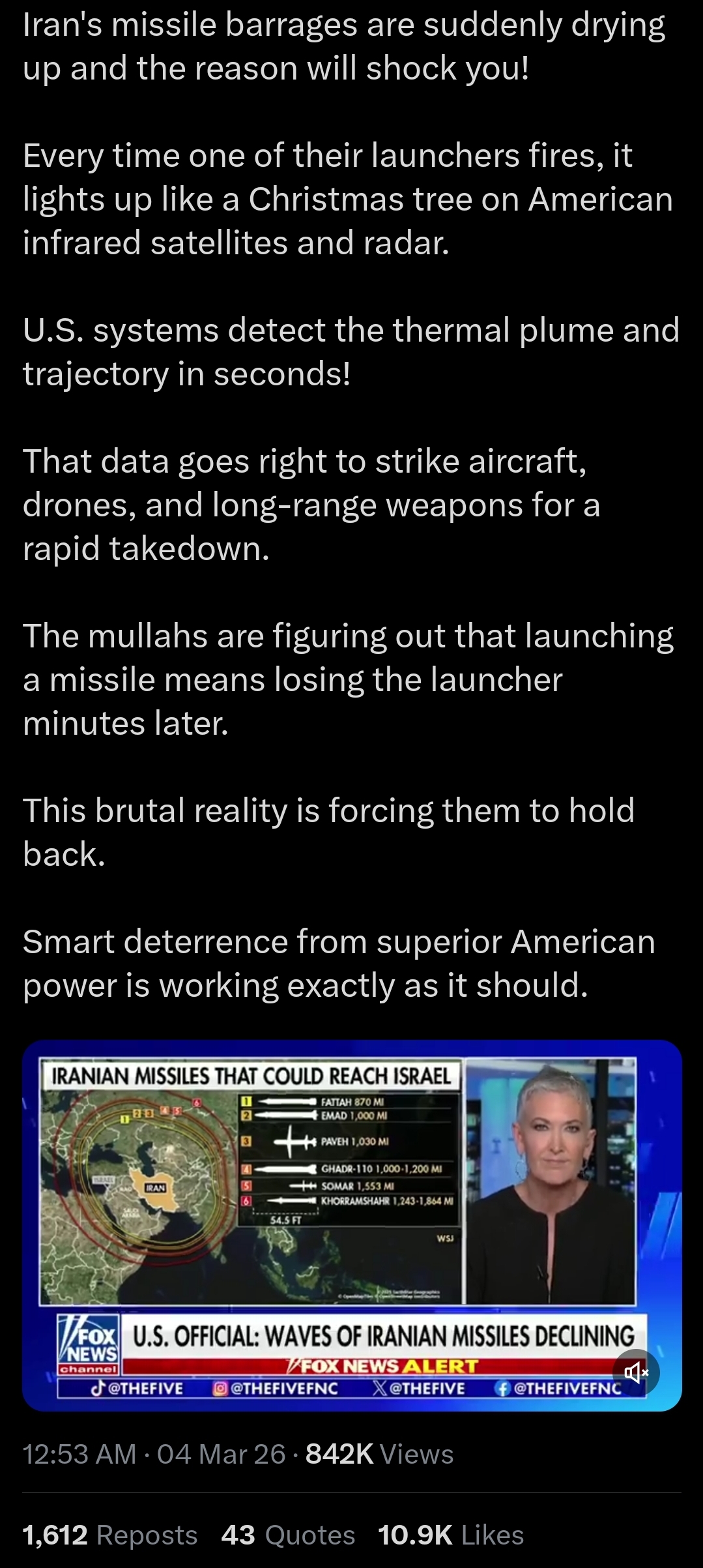 >>529844013why has iran launched 10 missiles in total towards israel this entire day?