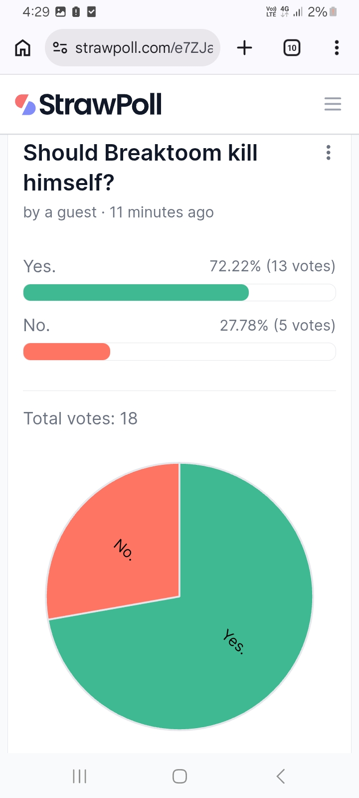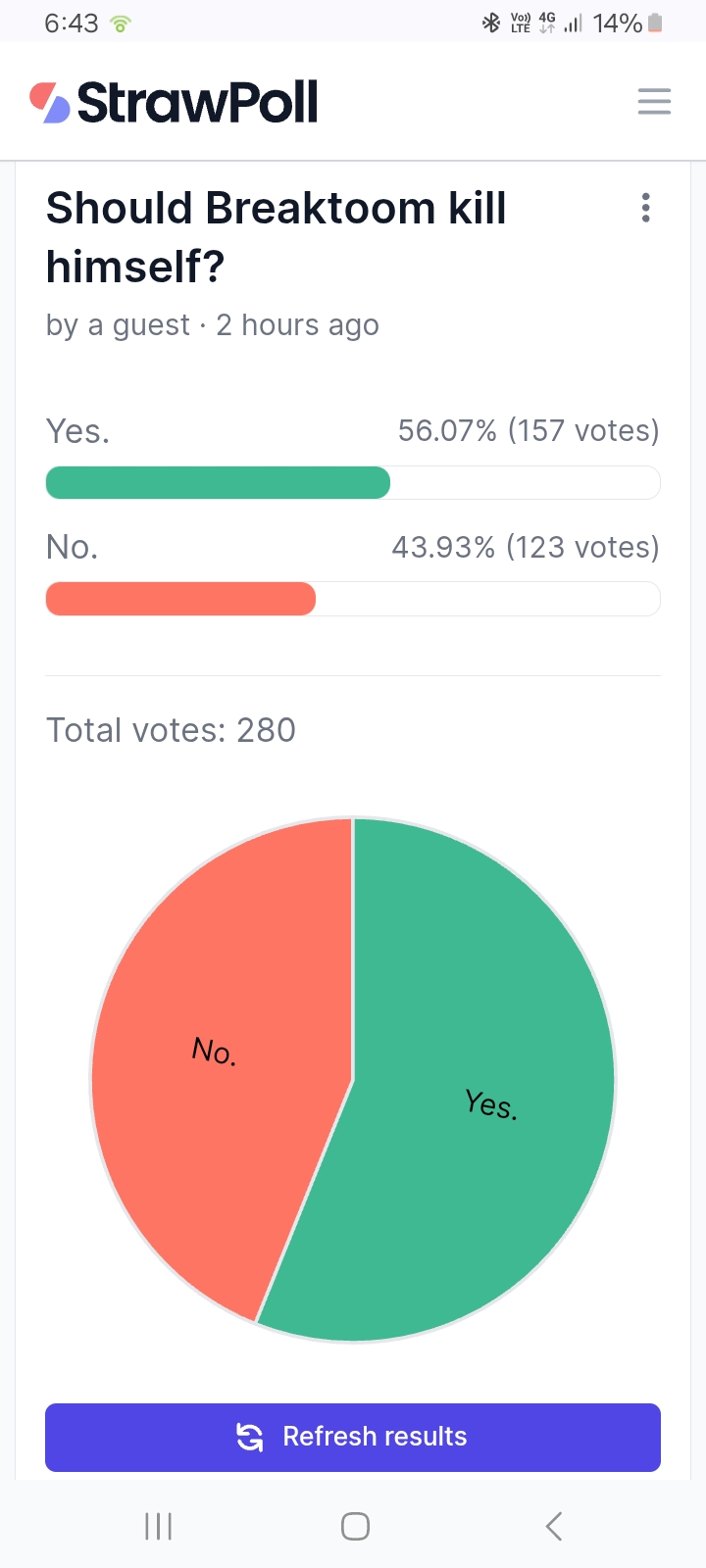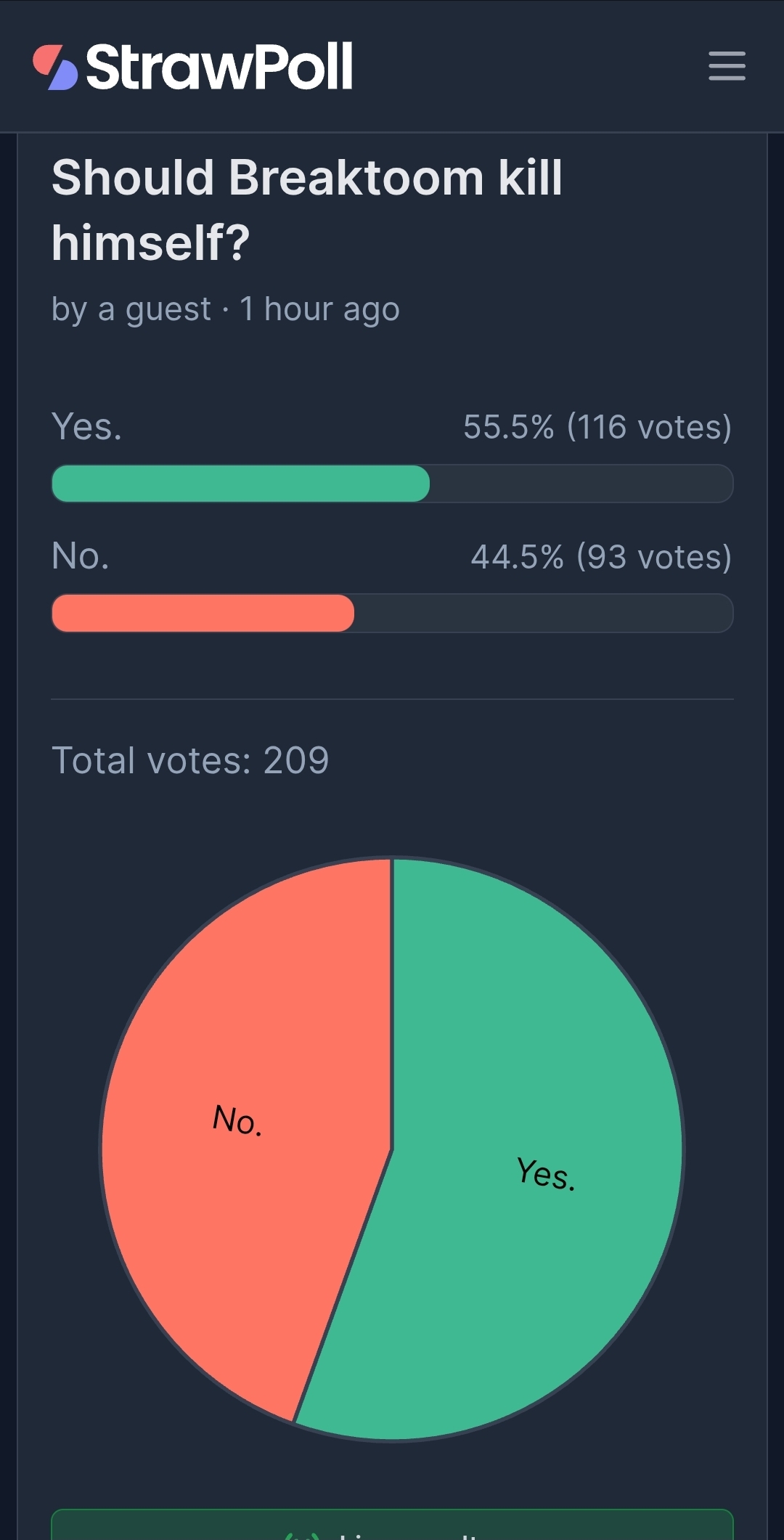 I was here when Breakroom bottled a poll telling him to kill himself/themselves and still lost