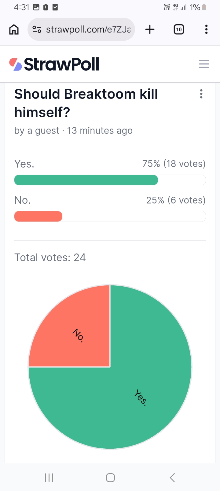 Final tally (even though poll has been botted by Pedoroom): he should kill himself, as per the majority on /pol/