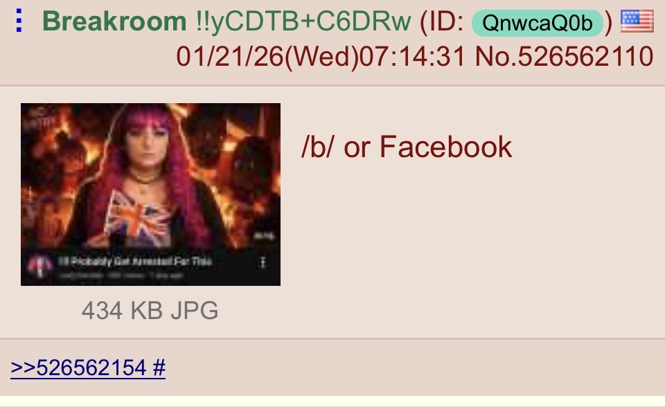 >>529850889Breakroom is dead and his trip is used by a homosexual federal agent (a tautology, I know)