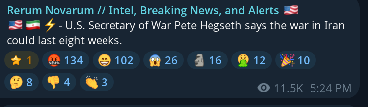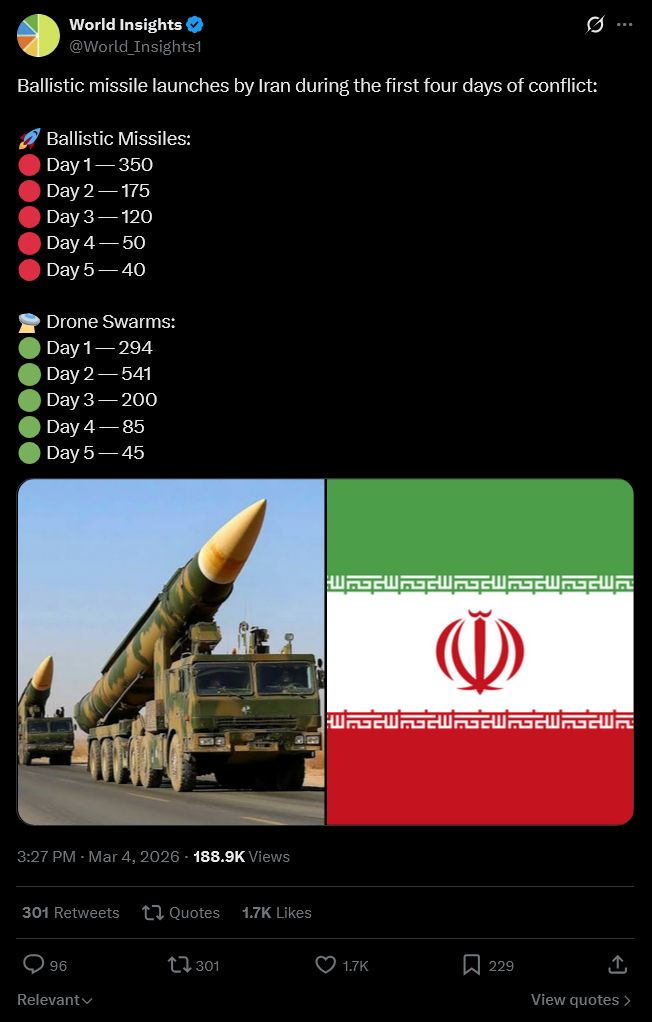 >>529859627Timeline▶Day 4:>Mojtaba Khamenei, the son of the late Ayatollah, has been elected Iran's next supreme leader - Iran International>IDF has dropped over 4,000 bombs on Iran since the war began—more than during the entire 12-day war in June>UAE considers striking Iranian missile sites as regional war spreads - Axios>USAF strategic bomber operations against Iran are expected to intensify in the coming days>Israel attacked the "Assembly of Experts" building in Qom while they were voting to choose the next supreme leader>Qatar attacked Iran in the last 24 hours, according to western sources - N12>Iran's Foreign Ministry says that fire "will engulf the entire world">Hezbollah declares "open war" on Israel - statement>The Israeli Army says its troops have been deployed at "several locations" in southern Lebanon.>Israel operated on the ground in Iran last night via Mossad and special forces - Al Arabiya>Dozens of B-52 bombers crossed the Atlantic overnight, en route to U.S. bases in Middle East>U.S. embassy in Riyadh, Saudi Arabia is struck by drones>U.S. orders mass evacuation from 14 Middle Eastern countries▶Day 3:>Iranian Parliament building has been targeted by U.S.-Israeli airstrikes>IRGC says that the Strait of Hormuz has been closed and that Iran will set fire to any ship trying to pass>Qatar downed 2 Iranian Su-24 aircraft, the Qatari Defense Ministry says>QatarEnergy, accounting for 20% of global LNG trade, stops all production after attacks on its facilities >Iran strikes Saudi oil infrastructure, including ARAMCO Ras Tanura facility — one of the world’s largest oil export hubs>3 x U.S. F-15E fighter jets were shot down over Kuwait in a friendly fire incident, all crew members ejected safely and are in stable condition - CENTCOM>De-facto Iranian leader Ali Larijani says: "We will not negotiate with the United States">Hezbollah joins the war, Israel retaliates with airstrikes on Beirut; launches ground invasion of Lebanon