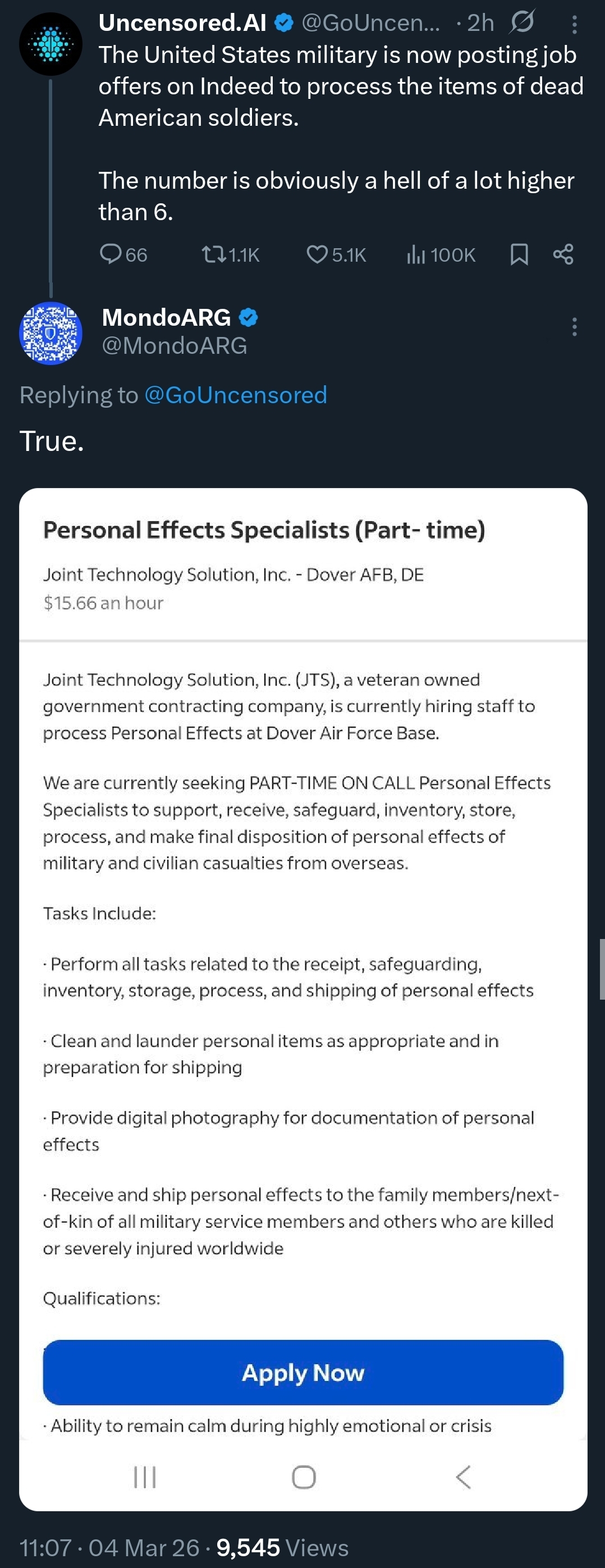 >job posting from some random veteran owned company