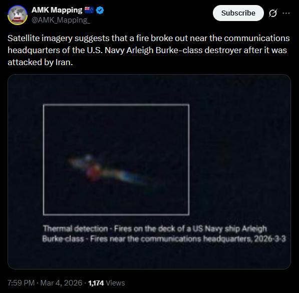 >Iranian frigate "Dana" has sunk after being torpedoed by a U.S. submarine in the Indian Ocean