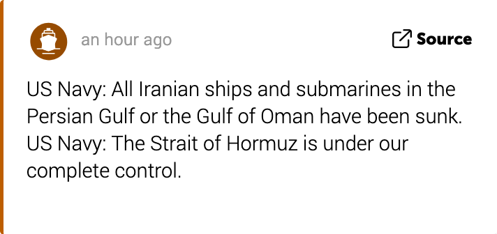 >Iran announces new wave of attacks against Israel; cleric calls on TV to 'shed the blood of Trump and Israelis'>Iranian Navy commander says more than 10 ships and tankers have been targeted by Iran since the beginning of the war, and now the target is US and UK vessels carrying cargo to Israel.
