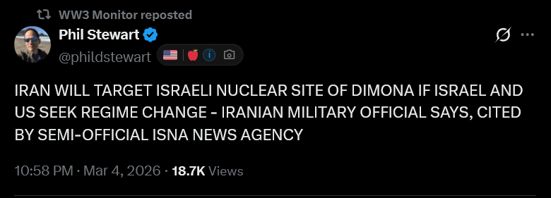 So now Trump and kegbreath are trying to convince everyone that this war will be over in a couple weeks if we send troops, while Iran has to threaten to expand the conflict and dragging it out to prevent that.