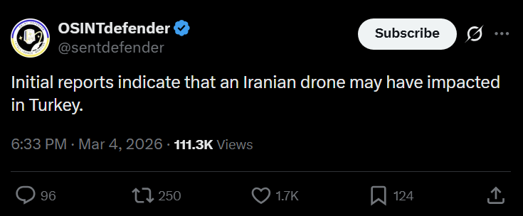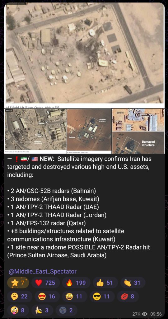 Previous: >>529889529Timeline▶Day: 5>Iranian and Kurdish sources deny any armed military offensive - Rudaw English>Kurdish forces in Iraq have launched a ground military offensive into Iran against the Islamic regime - Fox news>Iranian frigate "Dana" has sunk after being torpedoed by a U.S. submarine in the Indian Ocean>Ballistic missile targeting NATO Incirlik Air Base in Turkey, which stores ~50 B-61 nuclear bombs—intercepted by U.S. destroyer>IDF orders the evacuation of all Lebanese towns south of the Litani river as Israeli forces advance into Lebanon>CENTCOM has sunk 20 Iranian warships and a submarine in the Gulf of Oman — Statement>At least one Gulf country is close to running out of AD systems - CNN>Tehran is currently facing the heaviest bombardment of the war so far>CIA armed Kurdish forces to start an uprising in Iran - CNN▶Livestreamshttps://www.youtube.com/watch?v=4E-iFtUM2kk https://www.youtube.com/watch?v=JHwwZRH2wz8 ▶Telegramhttps://rentry.org/tgnews▶Twitter accounts (using proxy frontend because twitter's UI is trash):https://nitter.net/clashreporthttps://nitter.net/FaytuksNetworkhttps://nitter.net/sentdefender▶Israel Rocket Alertshttps://www.tzevaadom.co.il/en/▶Air Traffichttps://www.flightradar24.com/https://flightaware.com/livehttps://globe.adsbexchange.com▶Maritime Traffichttps://www.marinetraffic.com/https://www.vesselfinder.com/