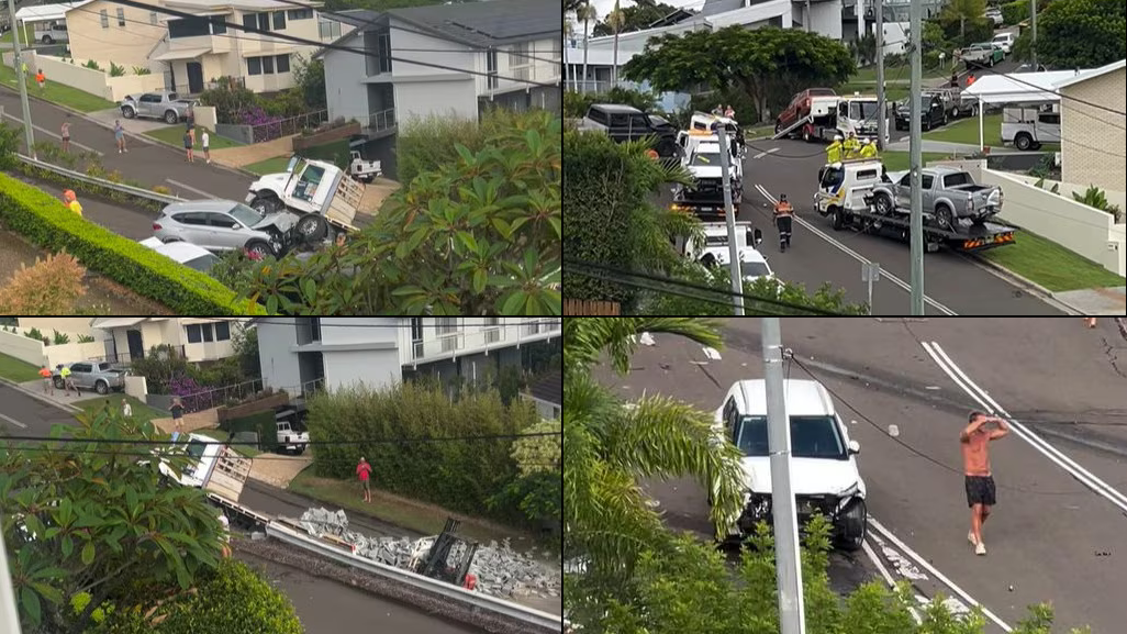 https://archive.is/9S5pG>‘Absolute carnage’: Truck loses control, careens down steep hill on quiet Sunshine Coast streetRajeesh has gone on an early morning durga durg and destroyed multiple cars, this is what you get for hiring poos.