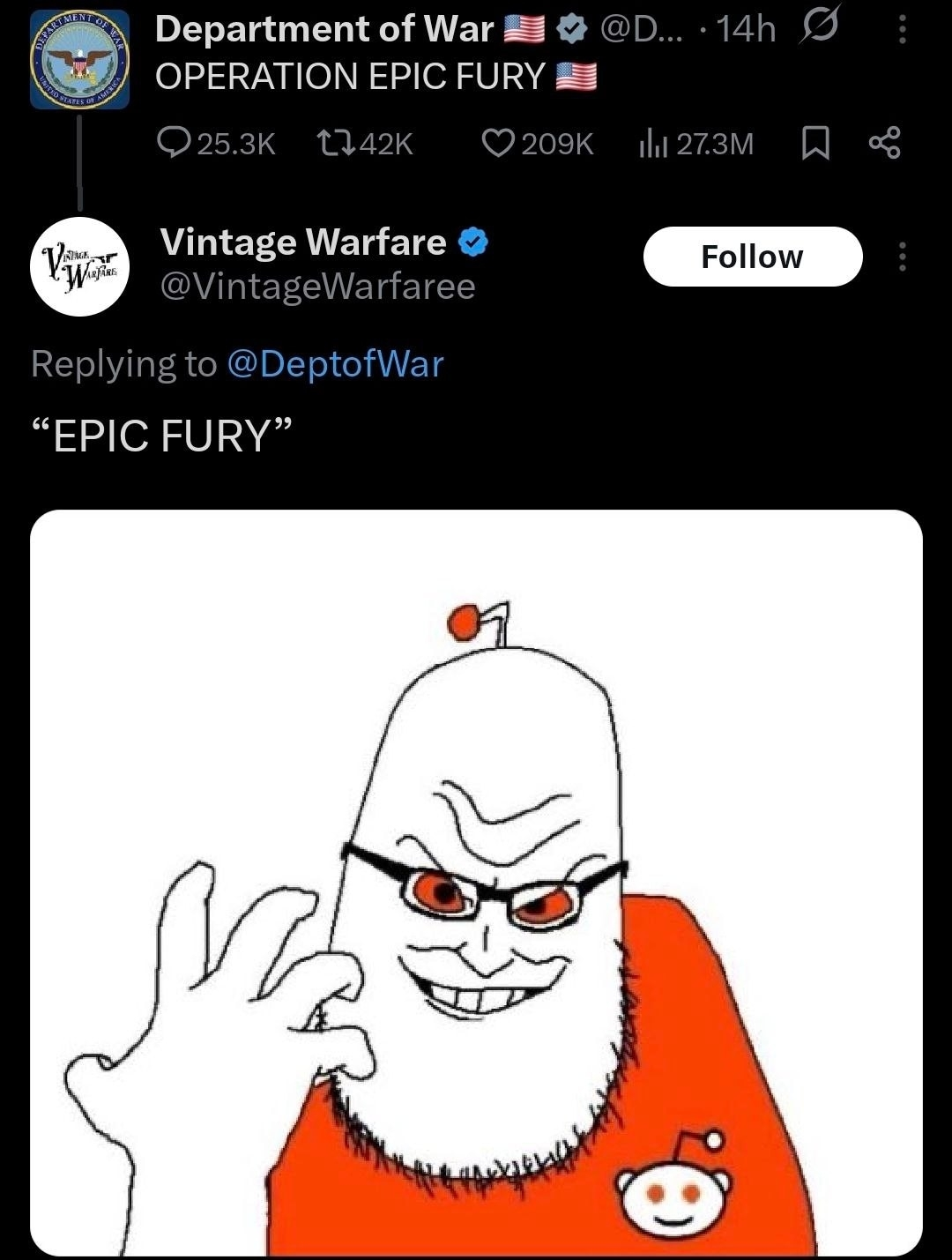 >>529917052>4 DAY SPECIAL COMBAT OPERATIONI genuinely think it was supposed to be a 2 days long one. Absolutely every single Dolan "le ebin victorious military op" goes on the same exact scenario: starts on the night of friday to saturday, fully wraps up by late evening of sunday, stock markets open in the morning of monday to never seen before yet another quick military success. And everything in green, and all the New Yorkan stock brokers are happy and patting lil' ol' Donnie on his back.So I think the proper terminology should be "one weekend long special combat operation for regime change in EYE-ran"