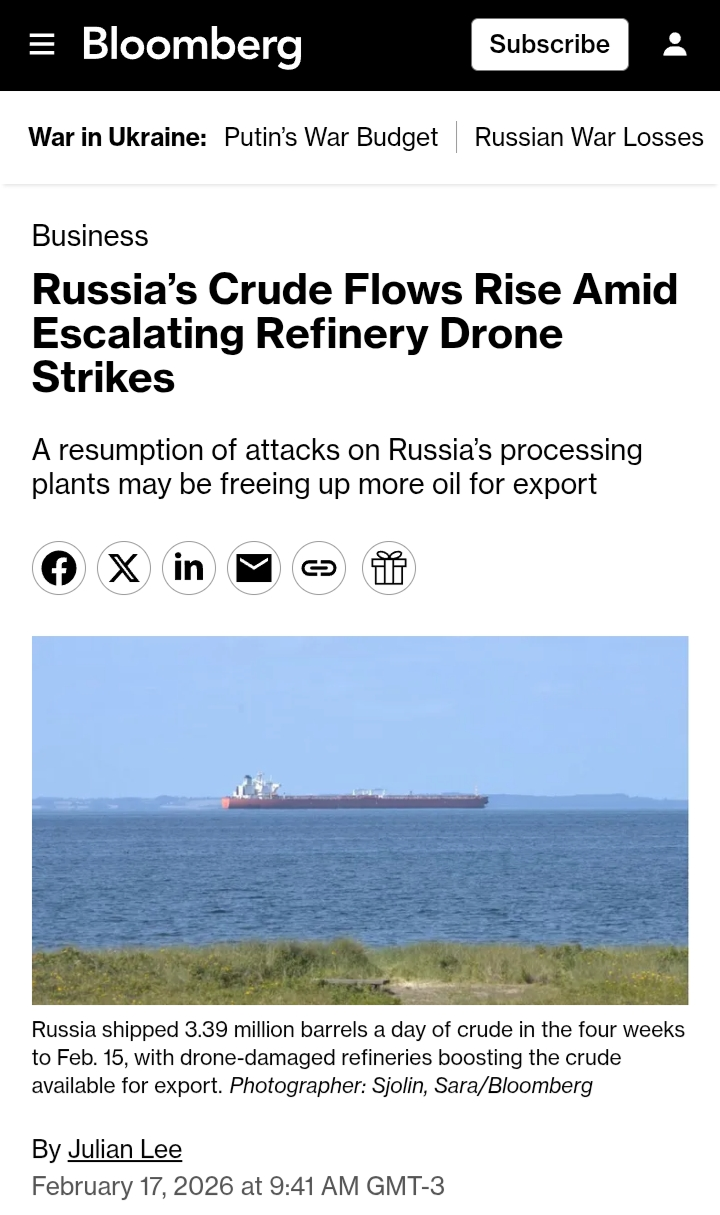 >>529922256>Russia sold more oil in 2025 than 2024 at the same discount with the same third-party fleetGee what a discovery