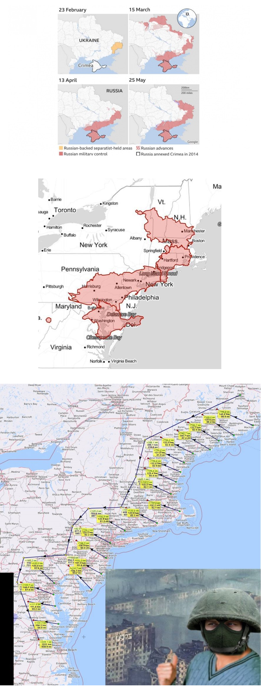 >>529924788Too bad for him that his people aren't as radical as he was. >>529924811All land isn't equal. That area of the eastern seaboard has more than 1k people per square mile. The land Russia has taken is dirt roads, minefields and empty villages. Let me know when they take something like 4 Kharkiv's in that land area.