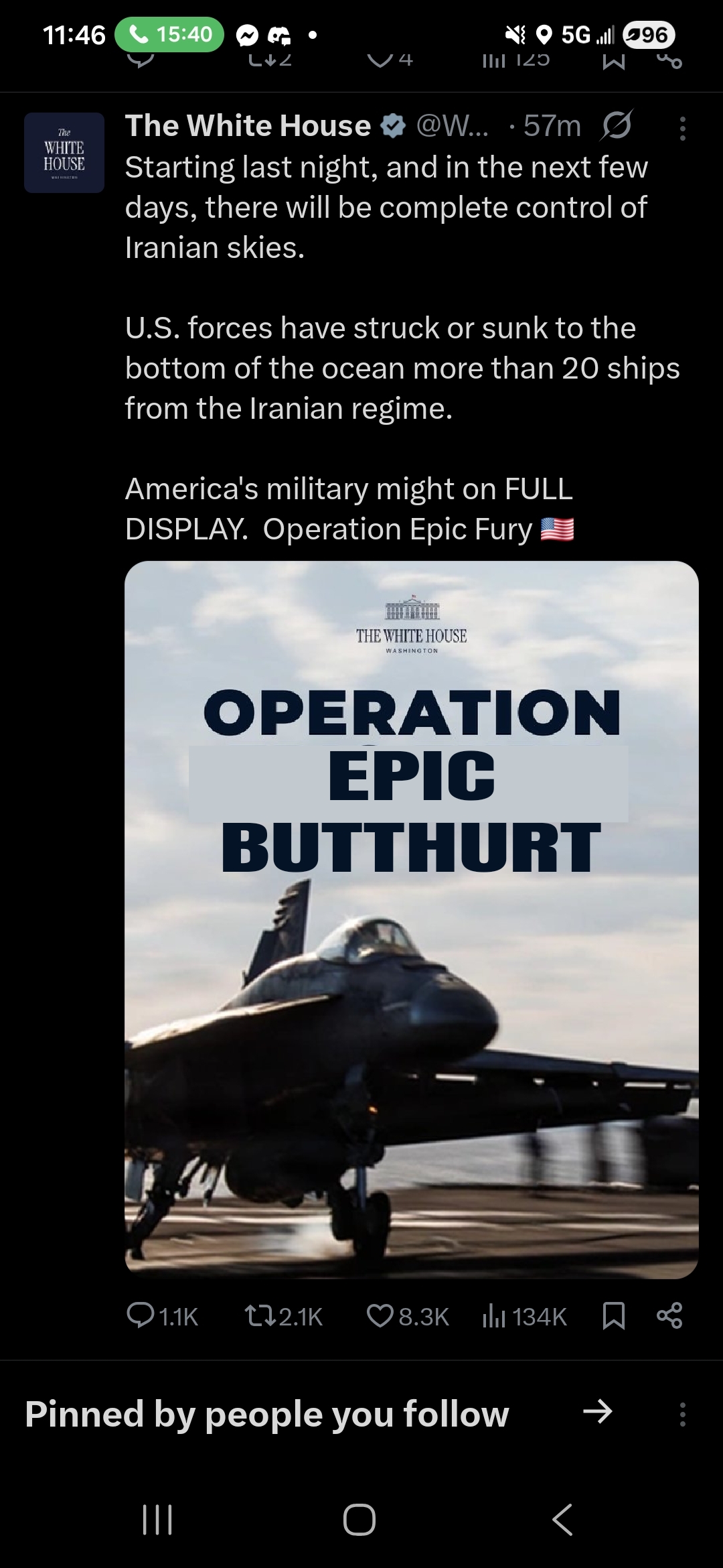 >>529930913>Now the US has total air dominance, sunk the iranian navy, is running constant carpet bombing runs on iran, the Turds are doing some gorilla shit inside iran. Its Joever.At least some of this is not true. Don't swallow American propaganda.