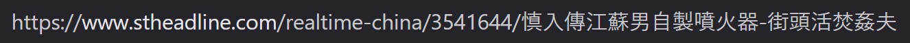 >>529934398>China does not have stuff like this going on.Yes it does you fucking moron. Lunatics exist everywhere. https://www.stheadline.com/realtime-china/3541644/%E6%85%8E%E5%85%A5%E5%82%B3%E6%B1%9F%E8%98%87%E7%94%B7%E8%87%AA%E8%A3%BD%E5%99%B4%E7%81%AB%E5%99%A8-%E8%A1%97%E9%A0%AD%E6%B4%BB%E7%84%9A%E5%A7%A6%E5%A4%ABLiterally just over a week ago too.