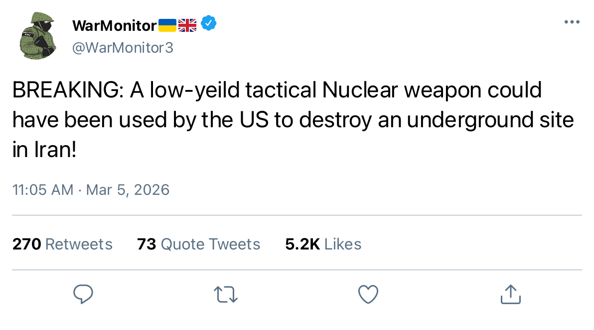 >>529936675Every conflict some turd-worlder thinks a nuke has gone off because of a big explosion at an ammo dump or something similar, its nothing new and highly unlikely that a nuke has gone off. A nuke going off would be one of those things everyone would know about in short order.