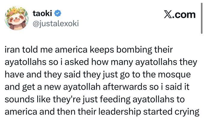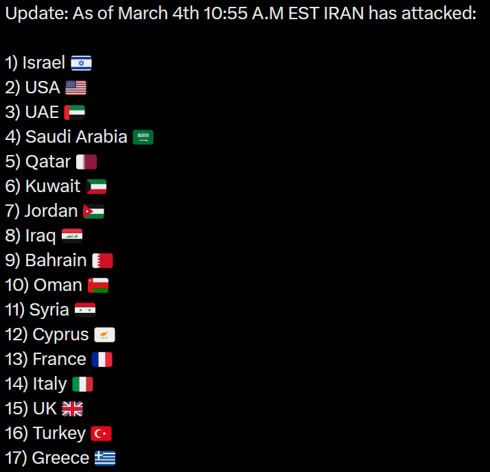Iran has less support than a lot of people here think. They're fighting this on their own. Russia isn't helping. China isn't helping. The rest of the middle east is pretty much on the side of the US and Israel also fighting against them. q