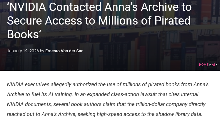 https://torrentfreak.com/nvidia-contacted-annas-archive-to-secure-access-to-millions-of-pirated-books/