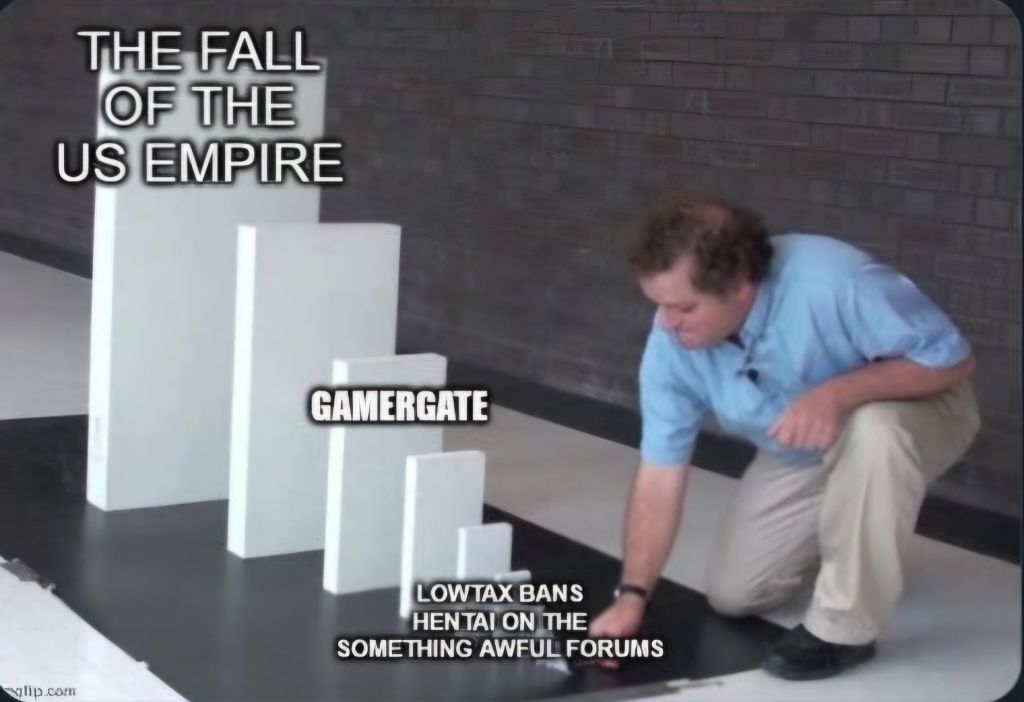 >>529951156>>529952185The reason for it becoming a 'movement' was the comical overreaction on the part of game journalists. It's like when you bully a guy and he just keeps responding to you and giving you more cues to bully him with. They just kept shitting and pissing themselves in public, it was basically impossible for a crowd not to collect itself around, pointing and laughing.